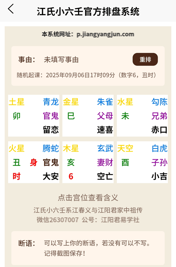 以上就是江氏小六壬官方系统排盘系统的使用说明,怎么样,是不是很简单?